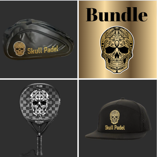 Bundle med Skull Padel taske, V1150 bat sort/hvid og Cap Sort/Guld